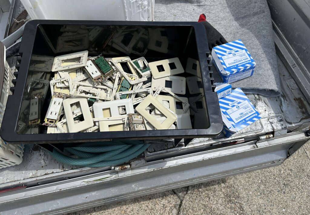 一部屋分を交換すると結構な量になります(拭いても綺麗に成らない埋め込みコンセント類も交換)。
