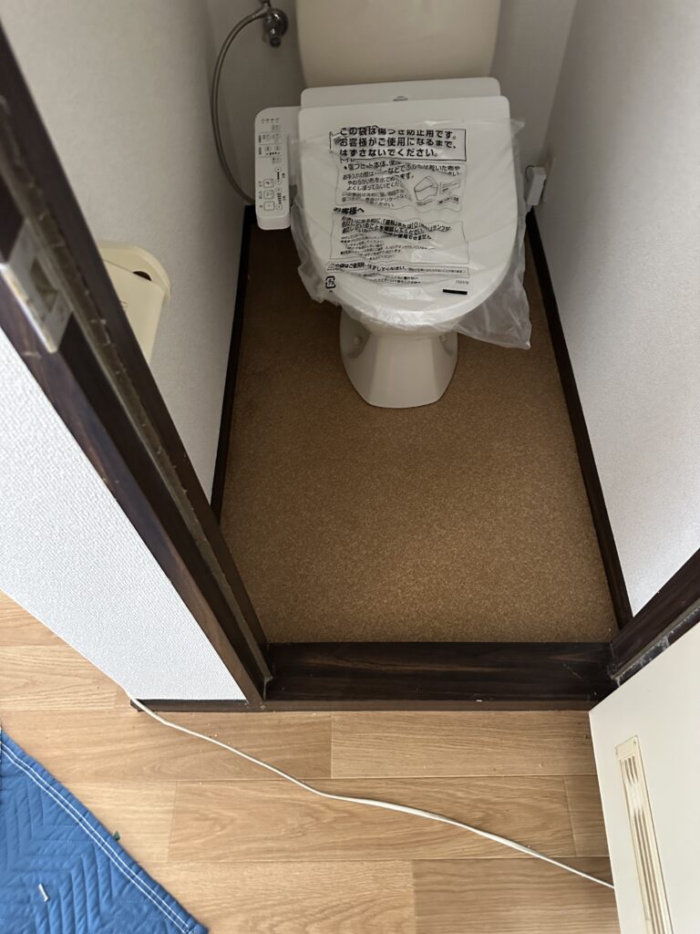 昨日は電気が来ていない部屋で、屋外のブースタ電源から延長コードを引いて作業。 便座の試運転すら出来ないし、汚れている室内も見えずらい。