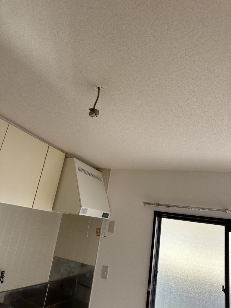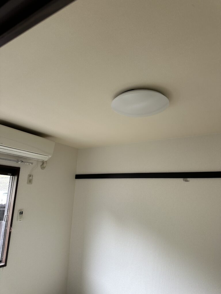 前の人が残して行かれたスリム蛍光灯のペンダントライトライトが2カ所あり、 取り外すだけではマズく思い、 昼食後にLEDシーリングライトに入れ替え。