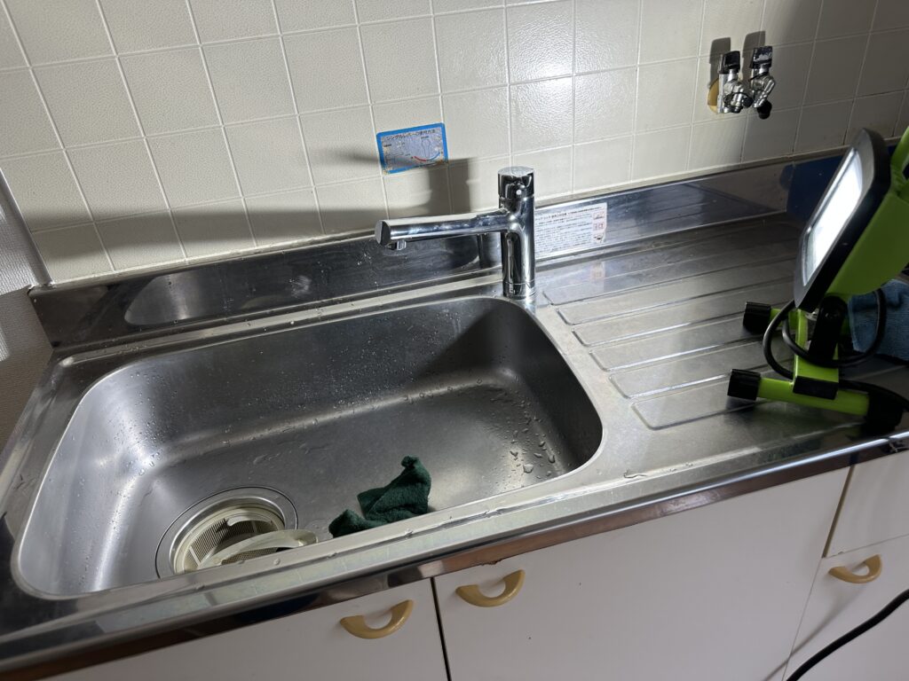 水を止める度に底の部分からジュワ―と水が出ていたので、親父が新しい水栓金具を管財屋さんに取りに走ってくれた。