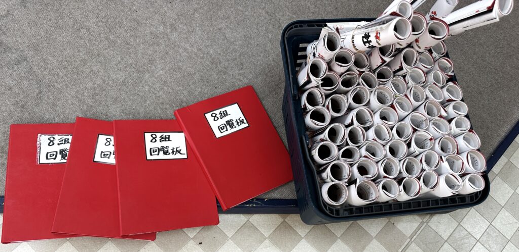 数日前に組み分けの資料が届いていたので、集合時に防寒手袋を脱いで震える指先で配布。 後で来られてない約1/3のお宅に配布して廻り、大汗をかく。
