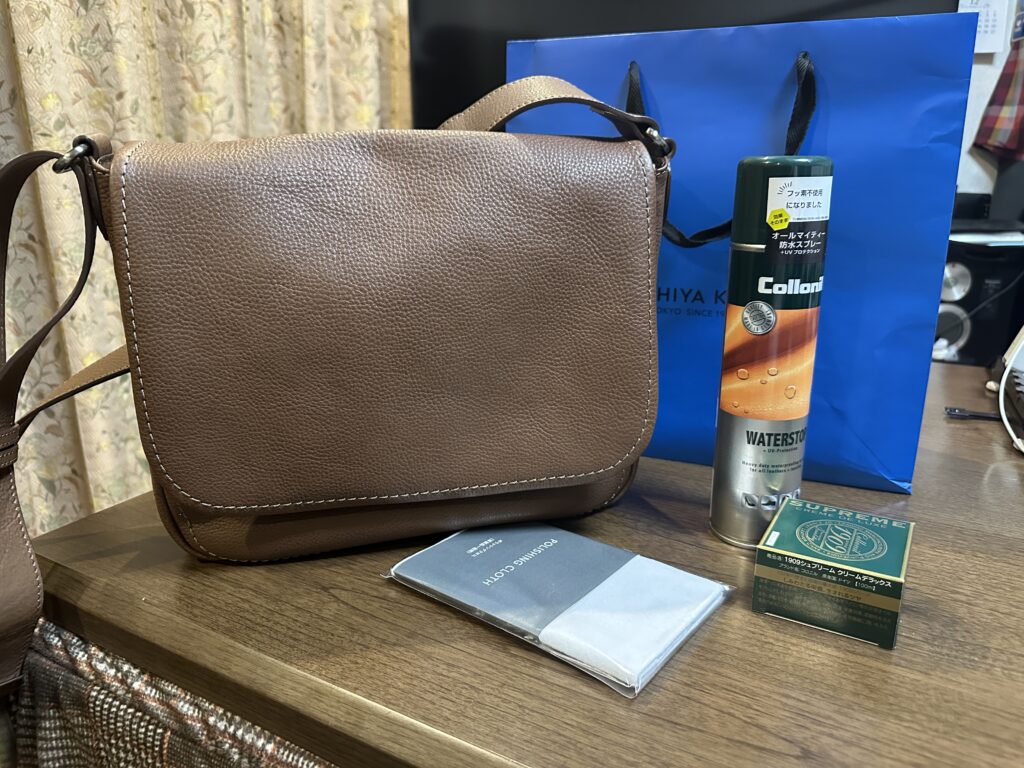 以降、どこへ行くにもこの鞄をタスキ掛けして使っていましたが、 普段はもう少し小さなカバンでOKって事で、土屋鞄さんで鞄を購入しました。