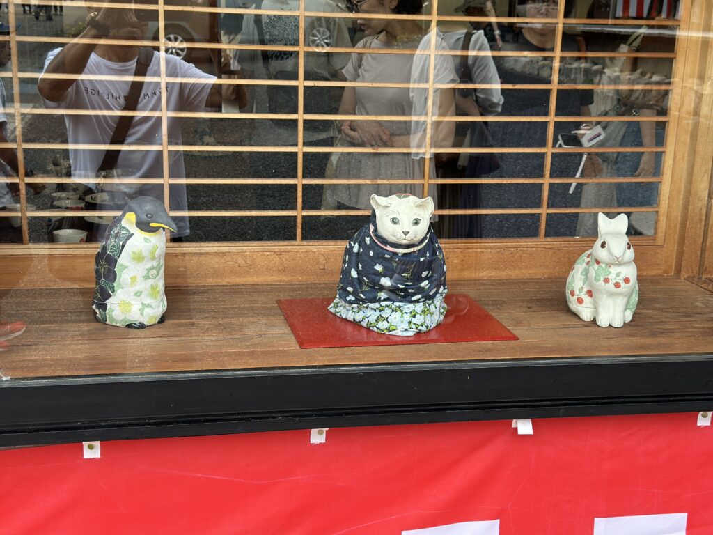 前に感動した猫の置物に仲間が増えていました。 中央の猫が感動ものです。