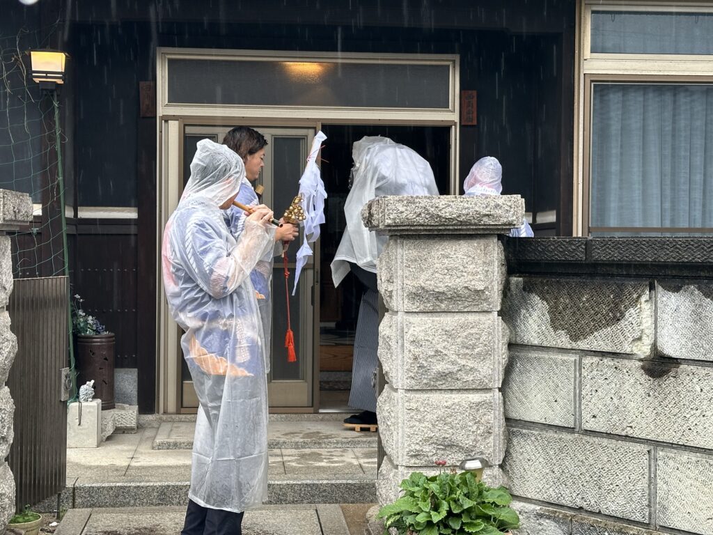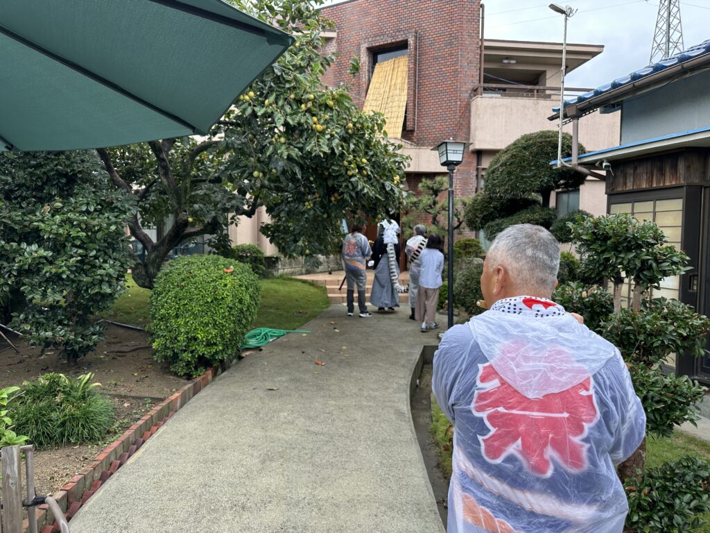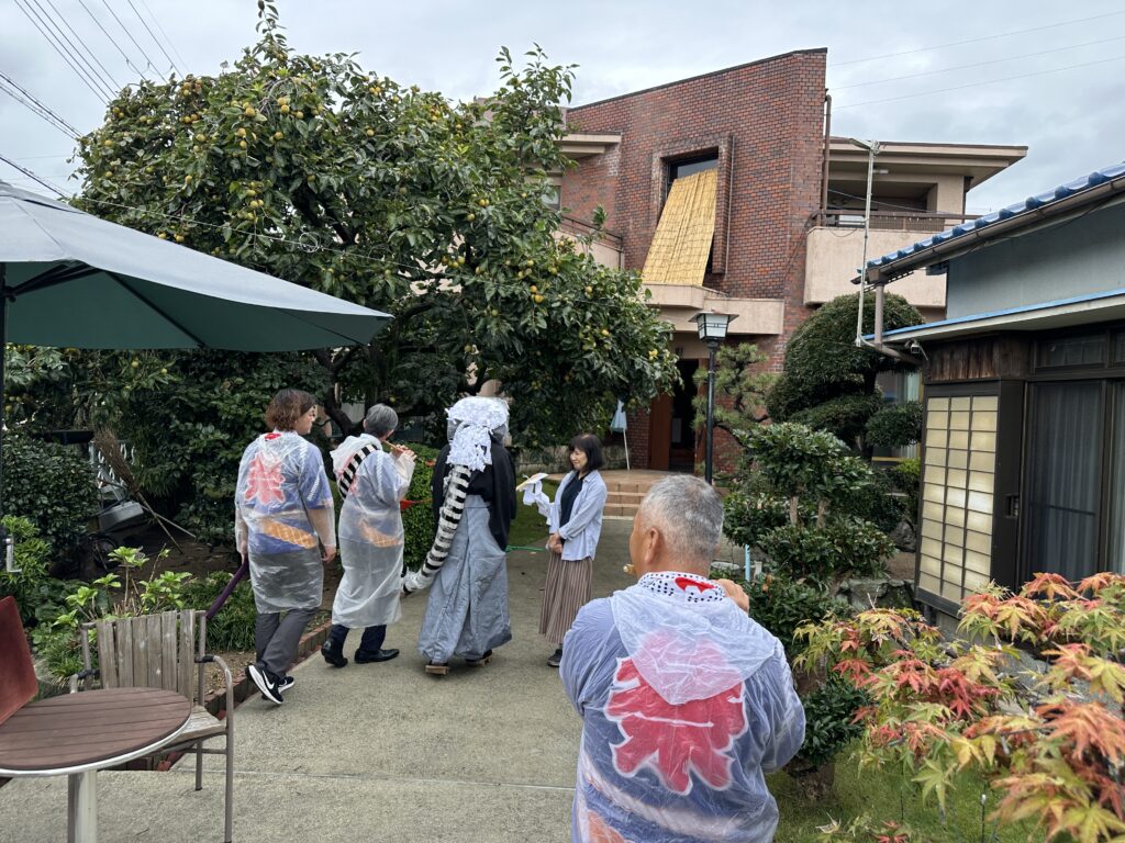 柿の枝が垂れているので、庭先で良いです。と伝えたのですが、奥まで入ってフルで舞ってもらった。