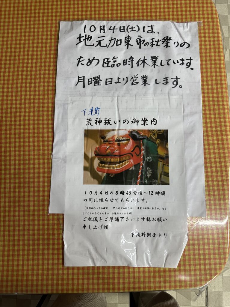 10月3日は店のシャッターに 臨時休業 の紙を貼って帰りました。