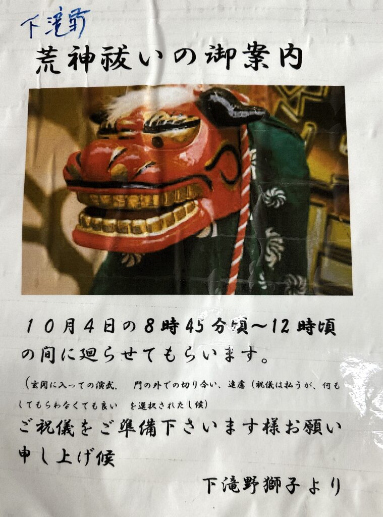 うちの組の 洋一さんが 荒神祓いの 花集めをされており、獅子と共に廻られているので、私はオマケで付いて廻っている様なものです。