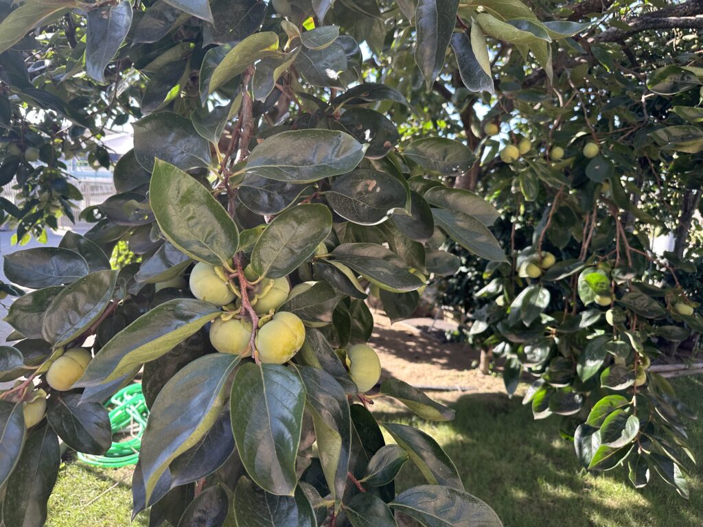 柿の実の重みで大きな枝が折れないかと、気が気でなりません。。