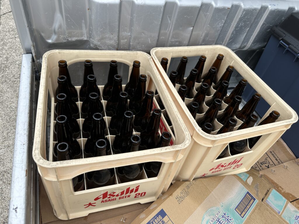 (ビール瓶だけ、 月曜朝の出勤時に西脇の電気屋に積んだまま来て、 後で加東市に走って、スーパーさとう に返却 ↖ )