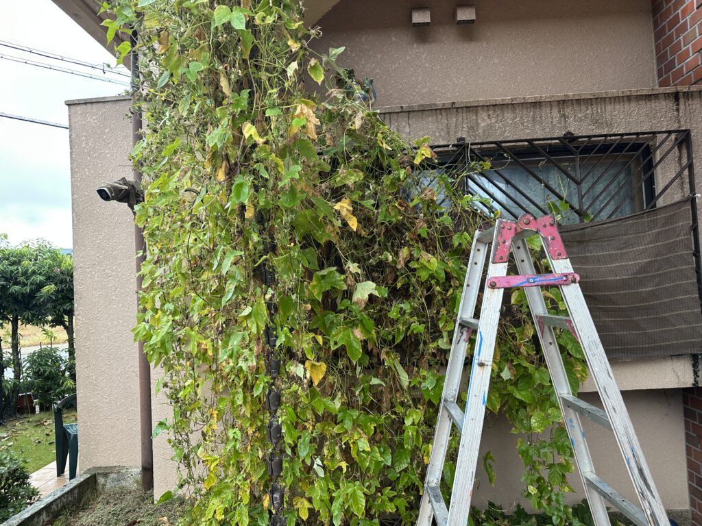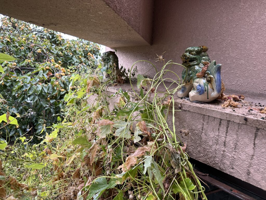 触るのが怖いような模様だったので蔓のまま柿の枝に移動させました。