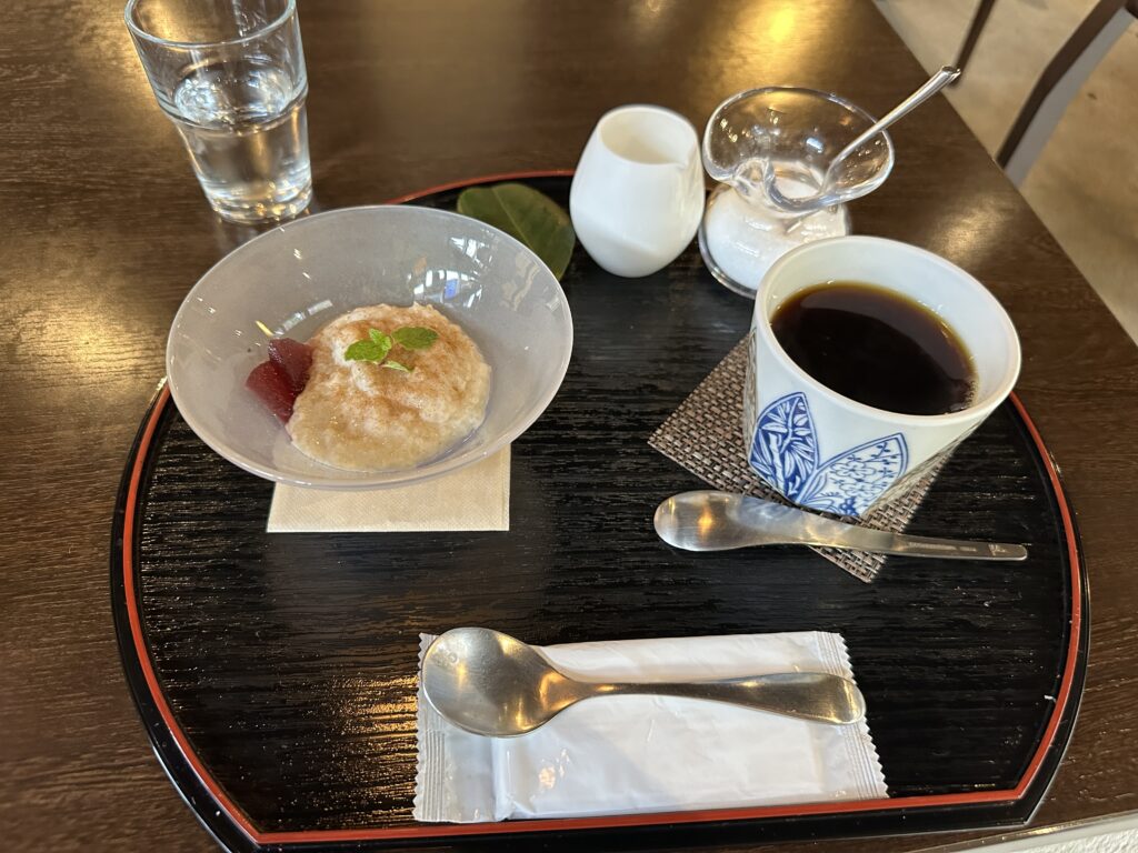 嫁↘ベイクドチーズケーキと自家製アイスクリーム、コーヒーのセット。