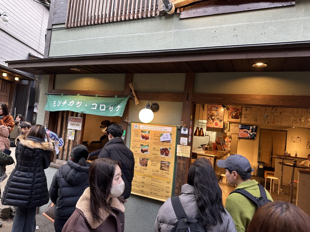 路地でミンチカツを摘まんだり、、